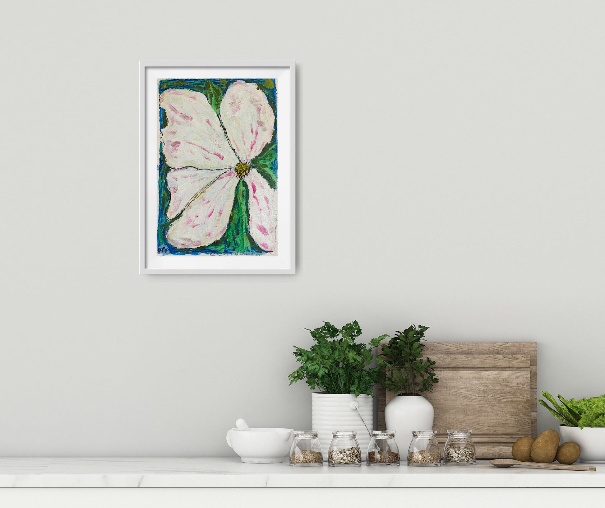 This floral study measures approximately 12" wide by 16" high and is created using mixed media on 300gsm fine art paper. Rendered in an impressionistic style, the artist explores expressive lines before enhancing the work with a second layer, deepening its impressionistic qualities. The piece can be shipped securely in an envelope or collected in person from Katie’s studio in Bath, UK.