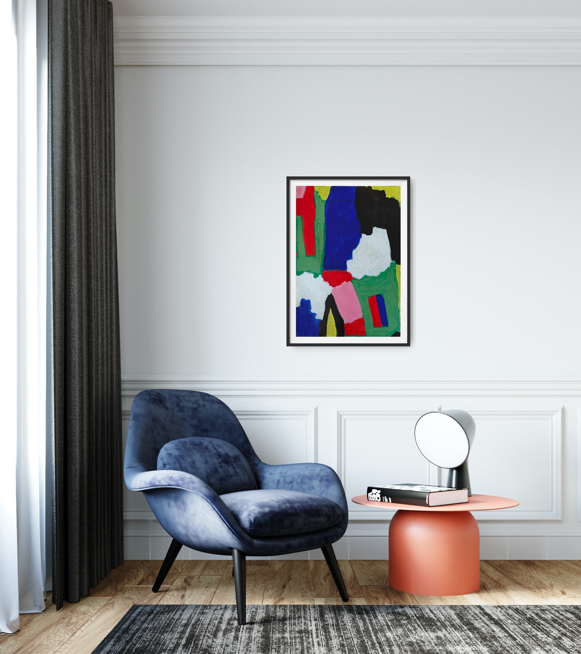 Primary Force - Study #2 offers a striking investigation into color and form, created as an experimental diptych piece. This visually impactful artwork enhances any environment with its dynamic presence. Painted in acrylic on fine art paper and protected by a matte finish, it arrives unframed, measuring 19.5" wide by 27.5" high. Each piece ships directly from Katie’s studio in Bath, UK, with applicable shipping charges.